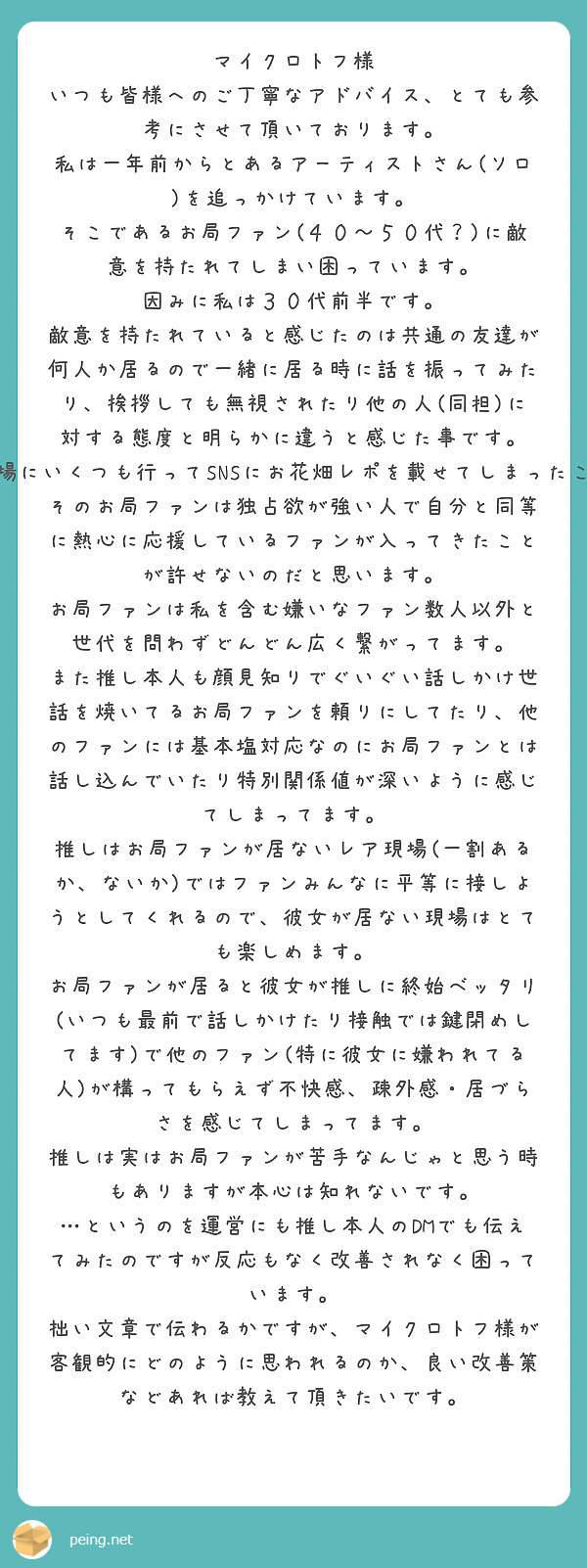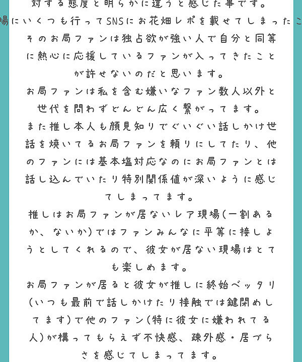 良い悪い別として、お局さんだけあって、そこそこの影響力だったり、推しさんに対してのサポート貢献があるんだろうなぁと思います。